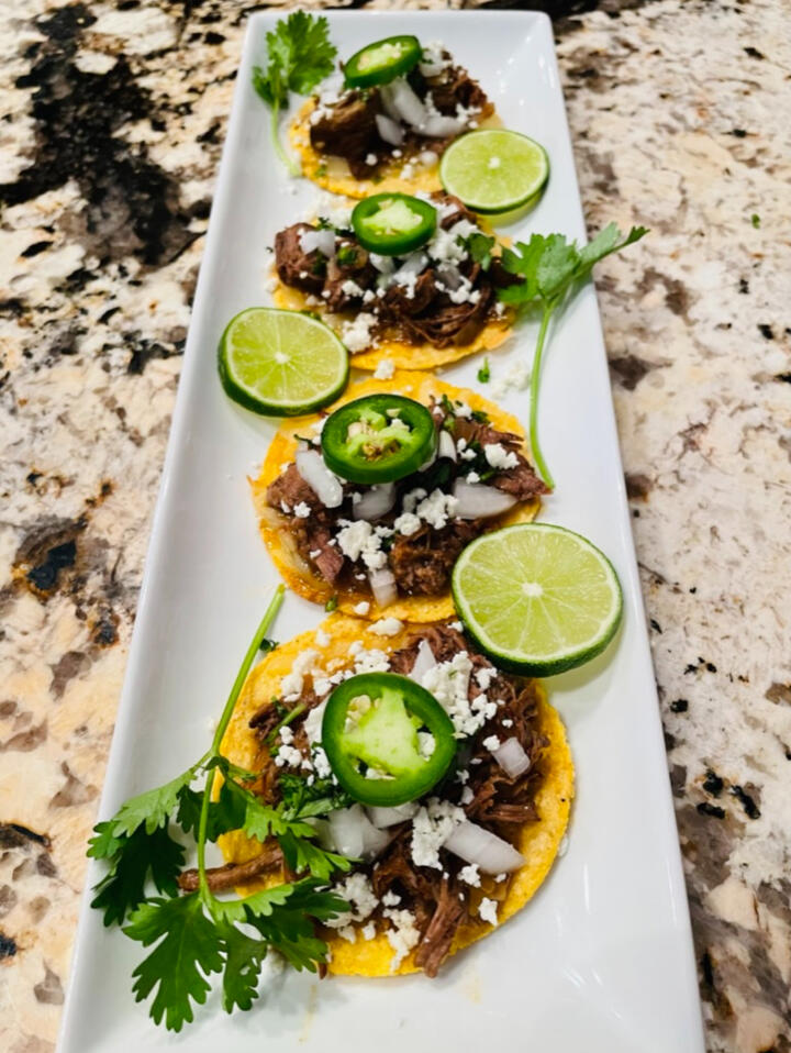 ¼ tsp. ground cloves1) Cut your chuck into cubes and sear over high heat.2) Cook in a crock pot until the meat shreds easily with a fork (approximately 6-8 hours on low, 3-4 hours on high)3) Serve as a burrito bowl, tacos, etc with any toppings you'd like!