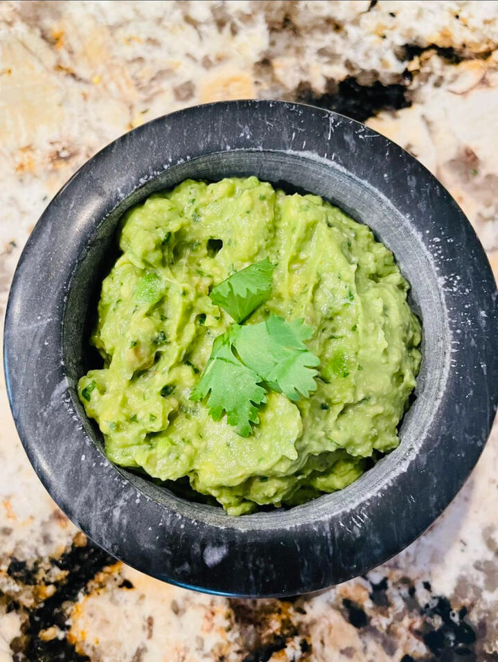 - Coarse salt1) In a mortar and pestle, add your onion, pepper, half of your cilantro, and a big pinch of coarse salt.2) Mash this to extract the flavor, until it is the consistency of your liking. If you don’t have a mortar and pestle, chop and smush it together with a knife to release flavor.3) Add this to your avocados, with the juice of 1 lime (or more to taste), the rest of your cilantro, and more salt.4) Mash until it is the consistency of your liking. Taste for salt and lime and adjust as necessary.Enjoy!