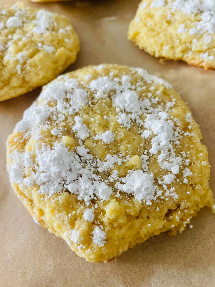 - Powdered sugar1) Let your egg, butter, and cream cheese sit at room temperature for at least 1 hour, closer to 2 is even better.2) With a whisk, mix the egg, butter, cream cheese, and vanilla extract until completely smooth and fluffy.3) Add the cake mix, and mix well until a dough forms.4) Refrigerate for 30 minutes, then form your cookies and put them on a parchment-lined baking sheet.5) Bake at 350 for 9-13 minutes until the edges get slightly golden.6) Let cool, add powdered sugar, and enjoy!