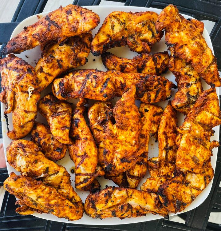 - 1/4 cup water1) Blend until smooth.2) Marinate chicken overnight or at least for a few hours, then grill.This is best with chicken thighs (but I used tenders because that’s what I had).